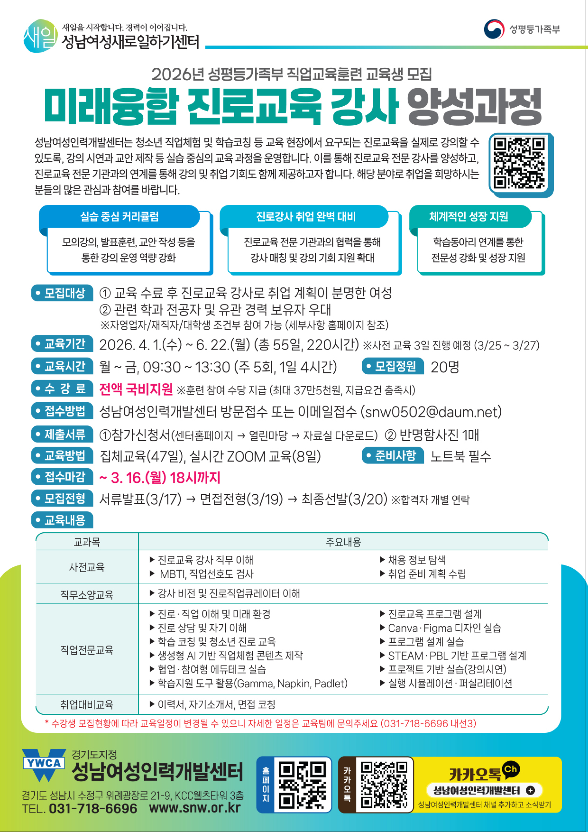 3) 2026년도 성평등가족부 새일센터 직업교육훈련 기 참여자