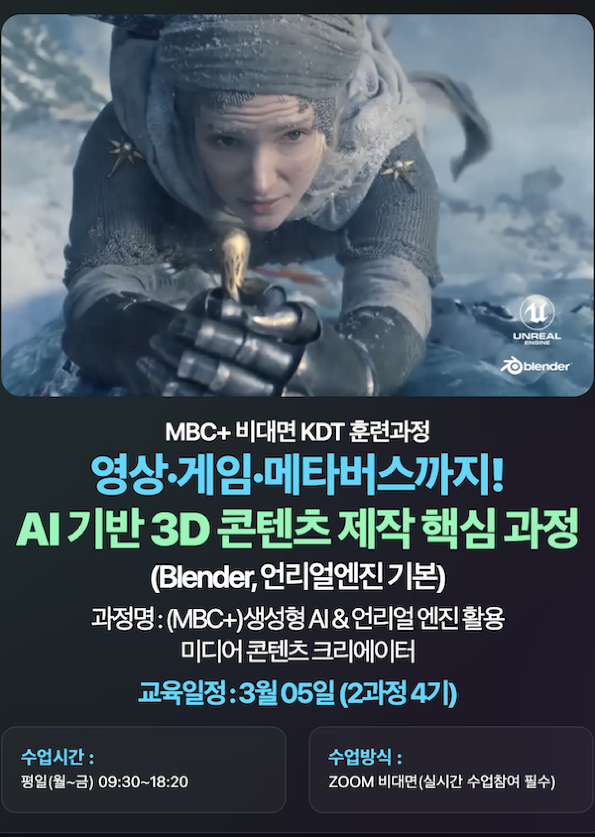 2과정 : 생성형 AI 활용 영상제작을 위한 3D콘텐츠 집중과정 (Blender, 언리얼엔진 기본)