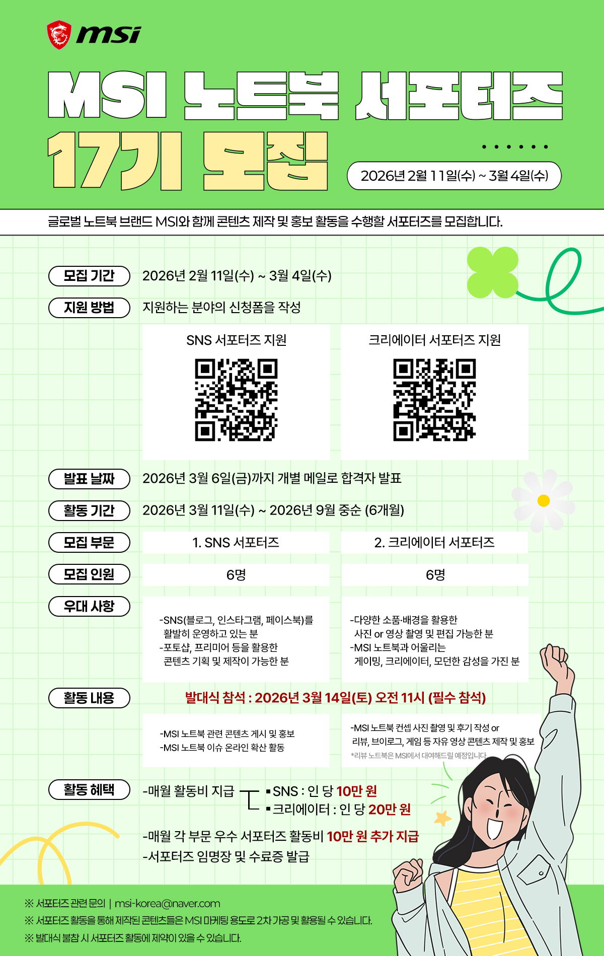 - 서포터즈 관련 문의 : msi-korea@naver.com