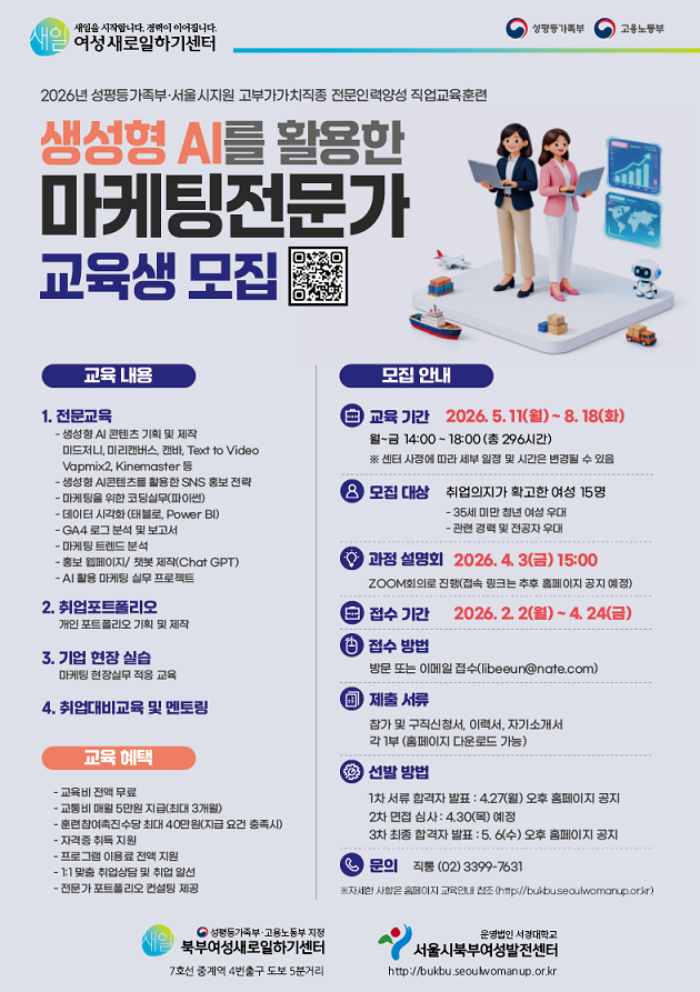 [성평등가족부_참여촉진수당 지급]생성형 AI를 활용한 마케팅전문가 교육생 모집