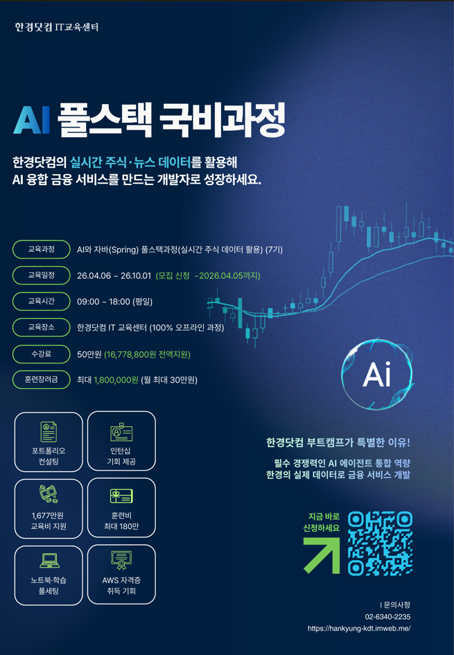 AI와 자바(Spring) 풀스택 과정(실시간 주식 데이터 활용) 7기에서 만나요! 🚀