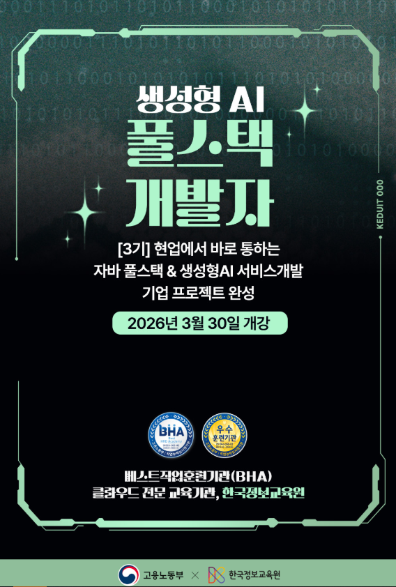 [국비지원] 현업에서 바로 통하는 자바 풀스택 & 생성형AI 서비스개발 기업 프로젝트 완성