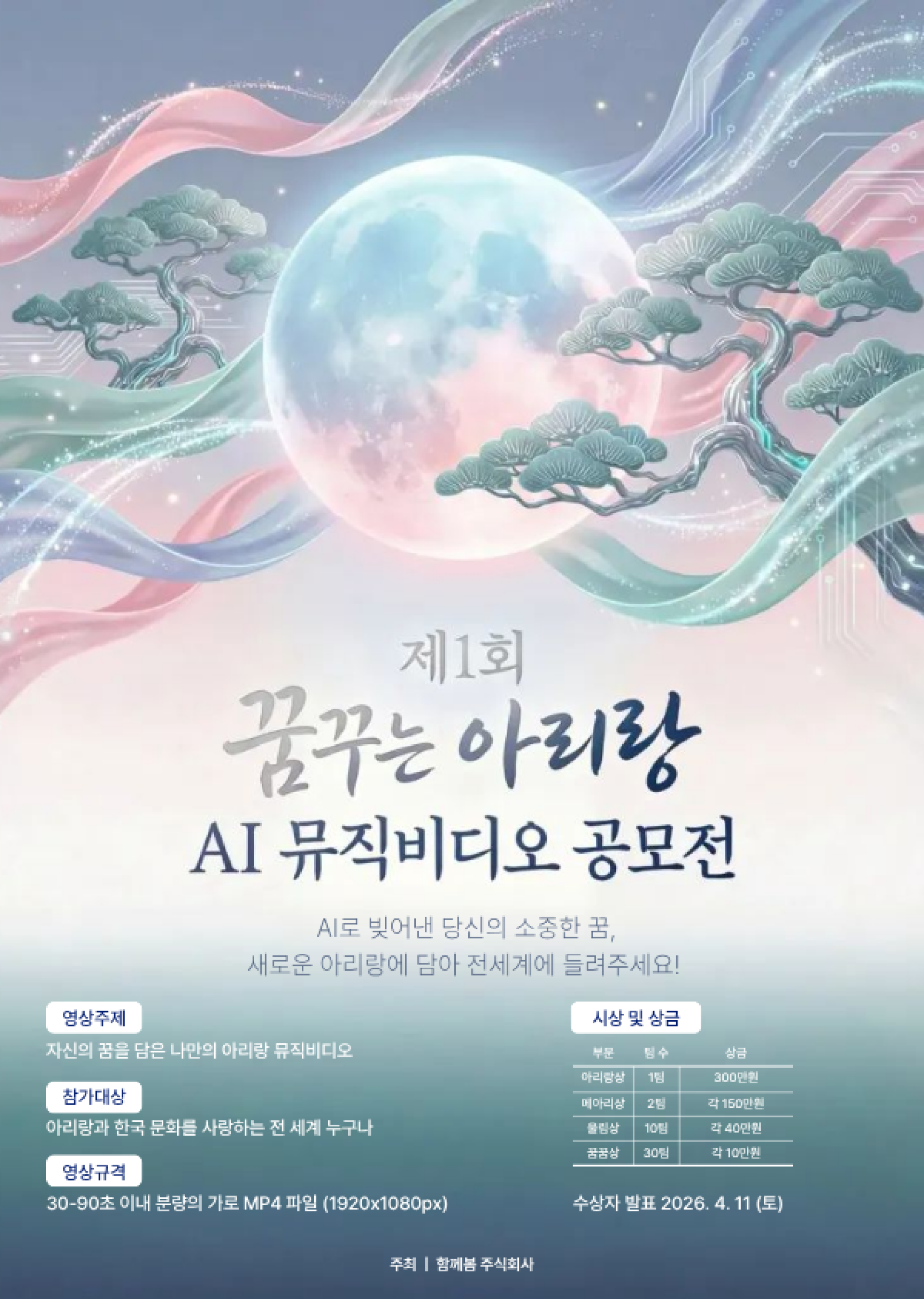 제1회 ‘꿈꾸는 아리랑’ AI 영상 공모전으로 우리 아리랑을 다시 한번 세계로 알립니다.