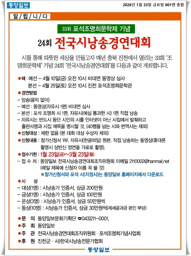 | 주최 | 동양일보 |