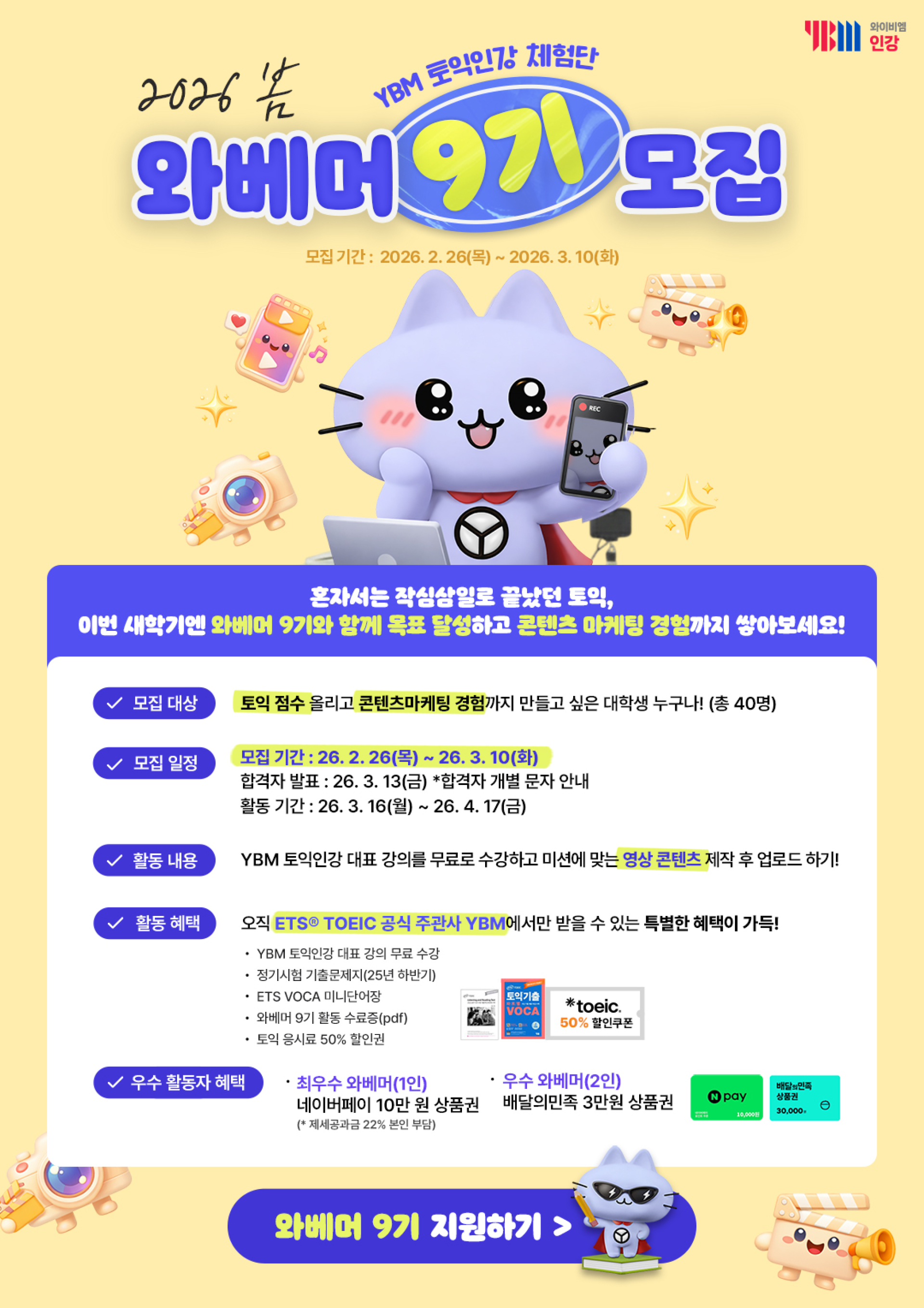2026 YBM 토익인강 대학생 체험단 와베머 9기 모집