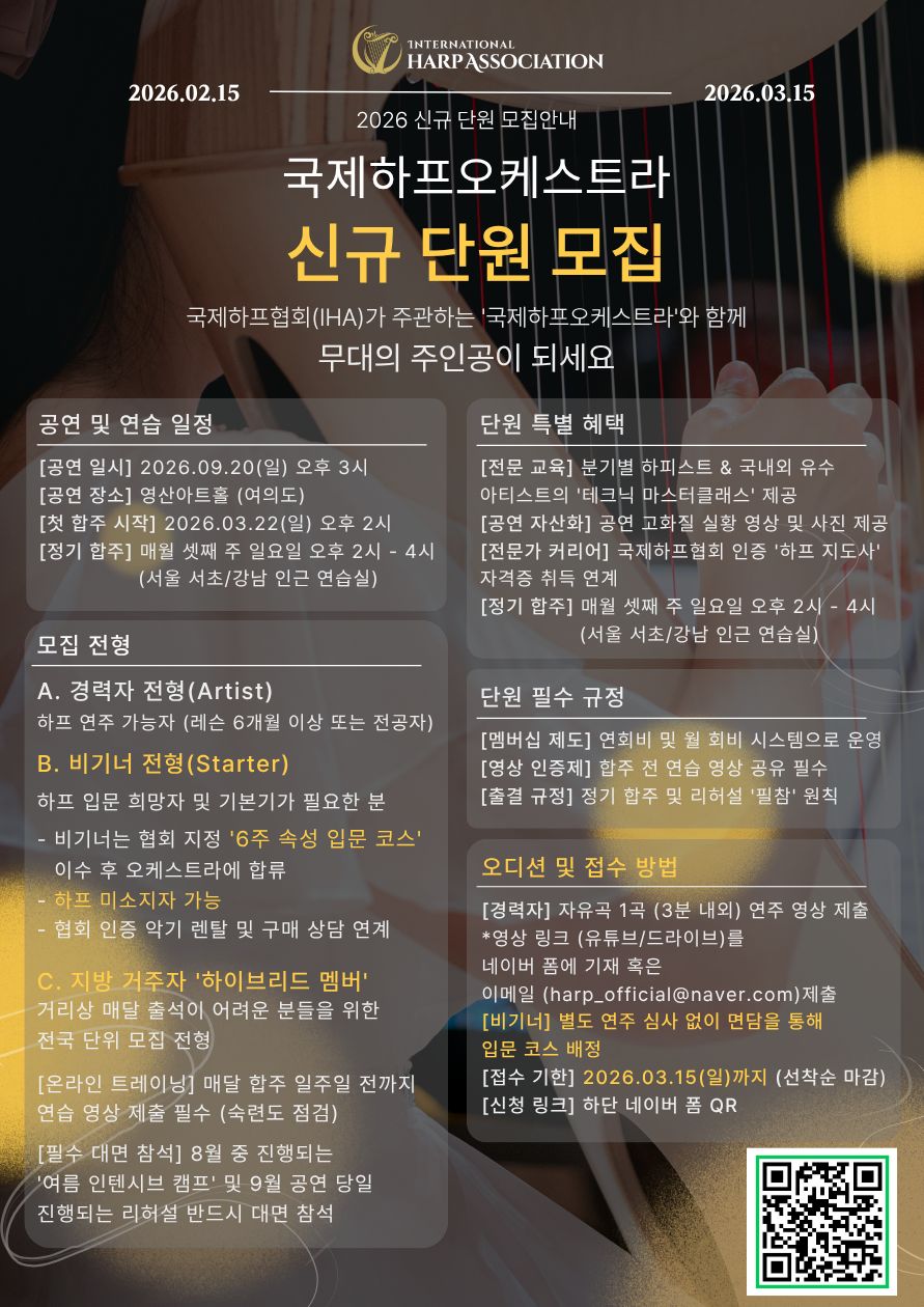 2026 국제하프오케스트라 신규 단원 모집