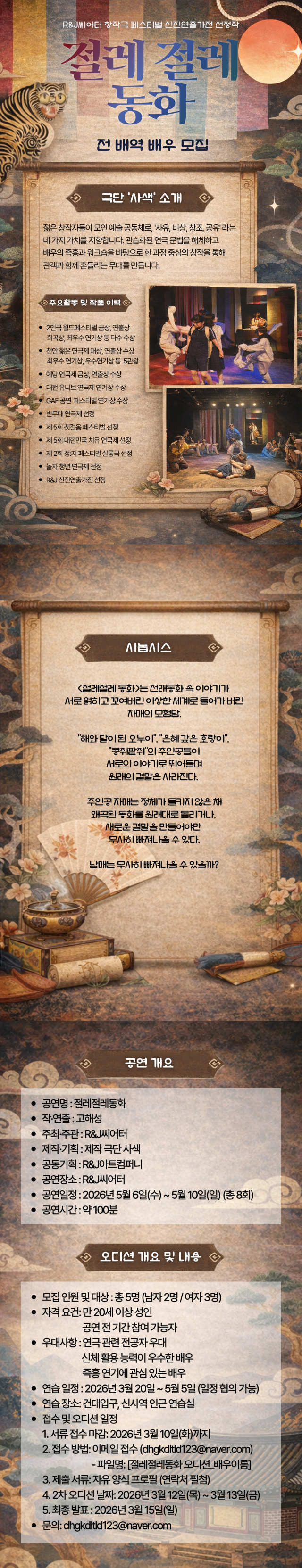 [배우모집] 극단 사색 <절레절레동화> 출연 배우 모집 (R&J 신진연출가전 선정작, 천안 젊은 연극제 대상, 연출상 최우수연기상 수상작)2026