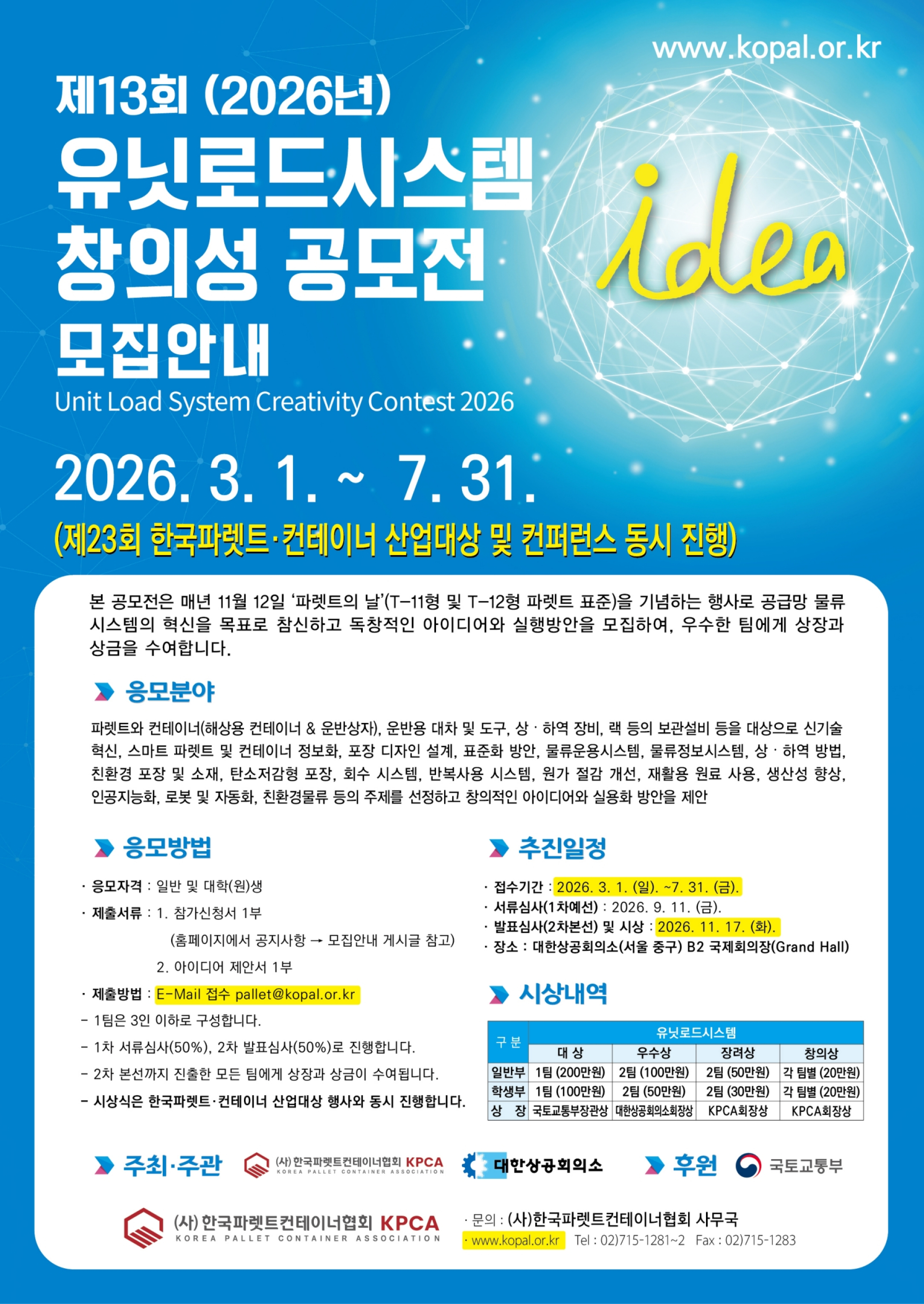 → 2026년 제13회 유닛로드시스템 창의성 공모전 모집안내