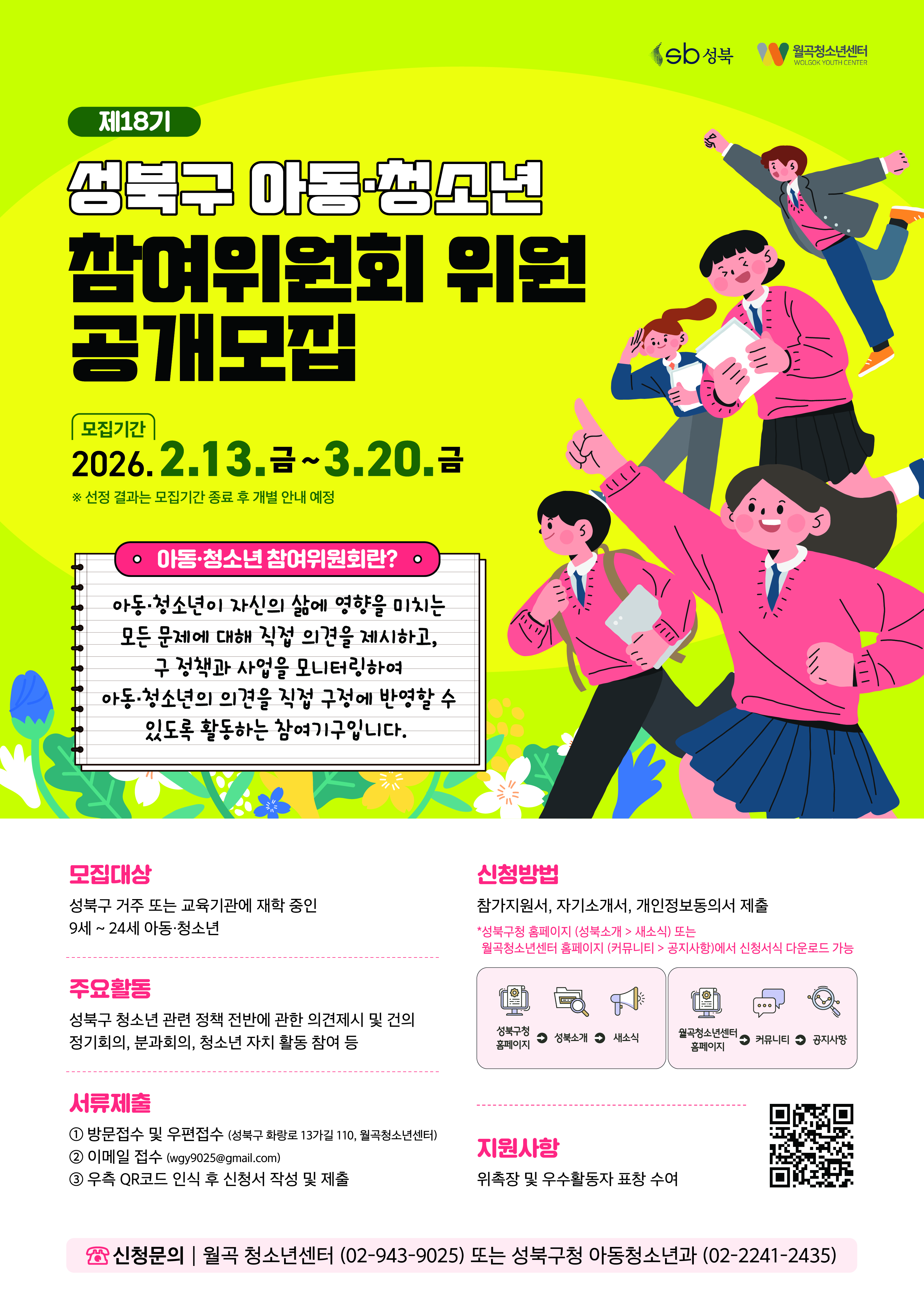 제18기 성북구 아동ㆍ청소년 참여위원회를 모집합니다!