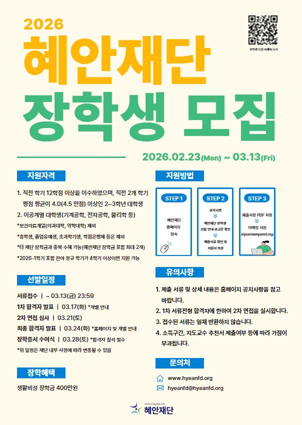 2026 혜안재단 장학생 모집
