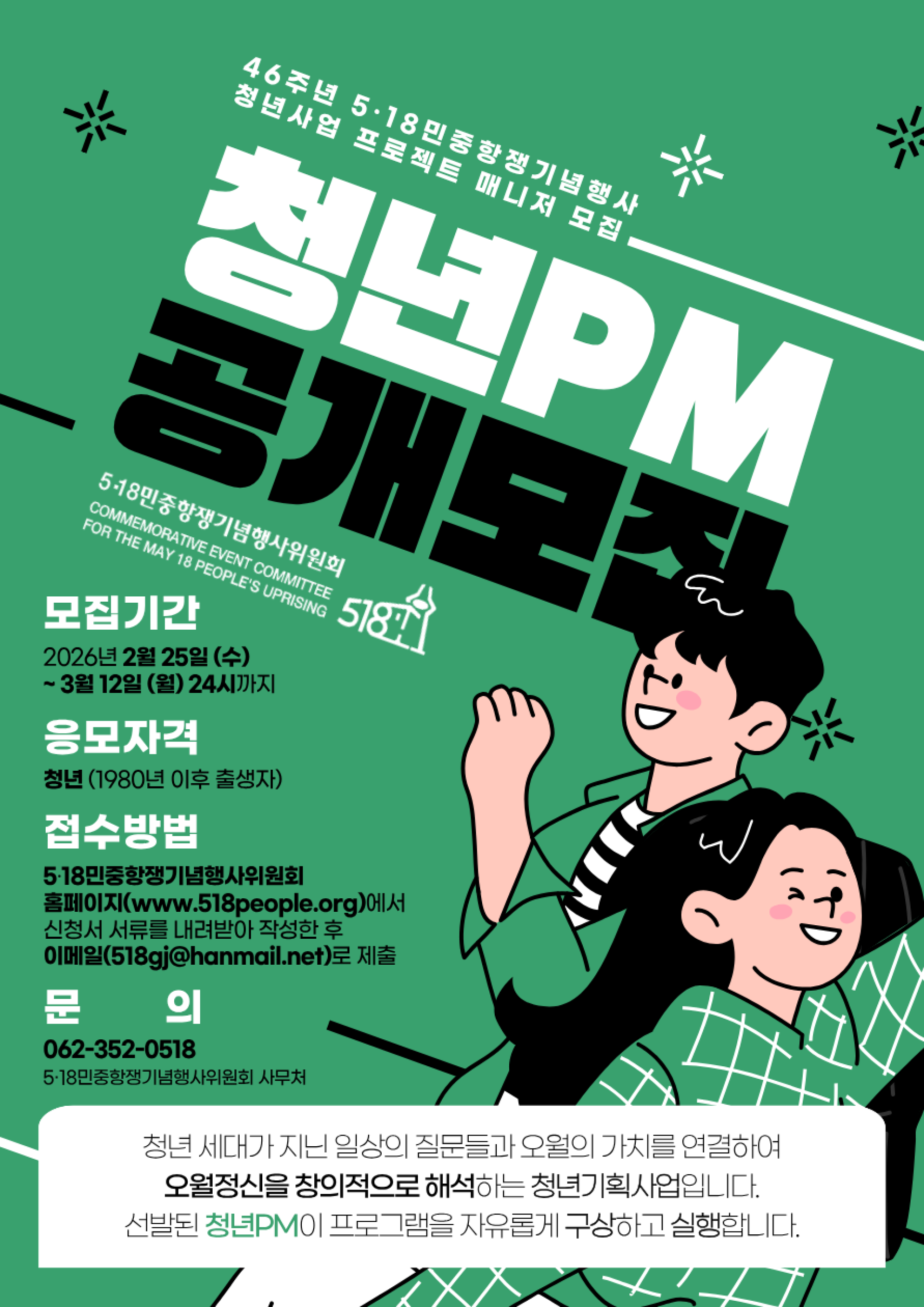 제46주년 5·18민중항쟁기념행사 청년사업 '청년프로젝트매니저' 공개모집