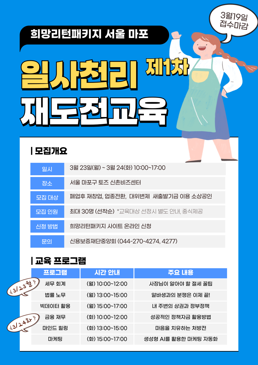 - 2026.3.23(월)~ 3.24(화) 오전 10:00~ 오후 5:00 (매일 6시간씩 2일간 교육진행)
