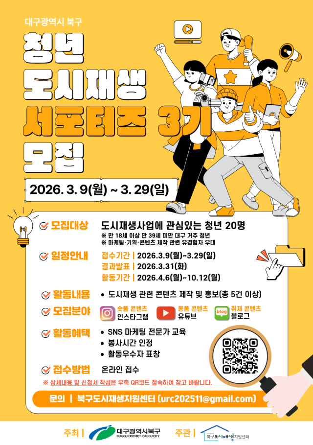 [대구 북구도시재생지원센터] 청년 도시재생 서포터즈 3기 모집(~3/29)