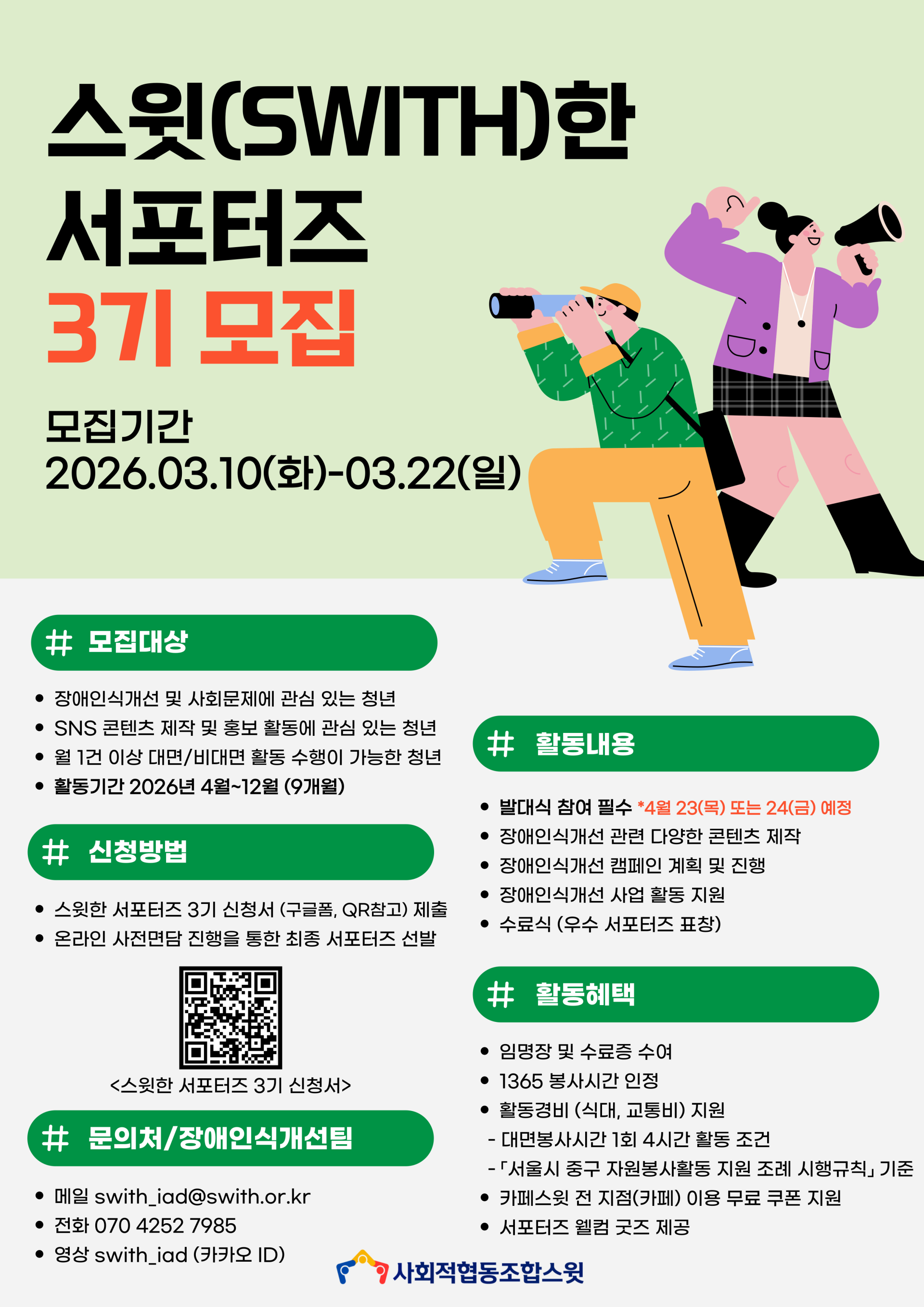 [사회적협동조합 스윗] 2026년 스윗(Swith)한 서포터즈 3기 모집