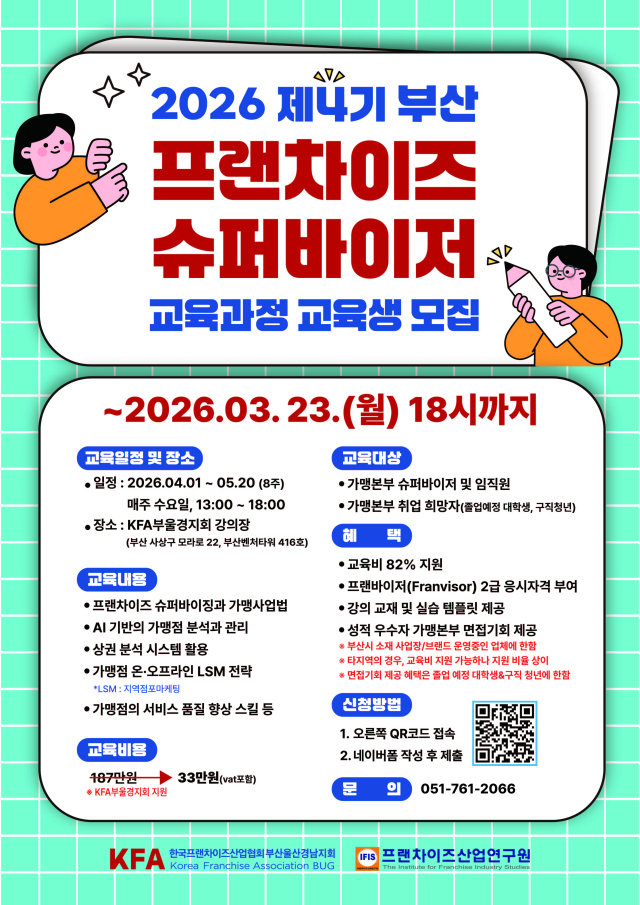 <제4기 부산 프랜차이즈 슈퍼바이저> 교육생을 모집합니다!