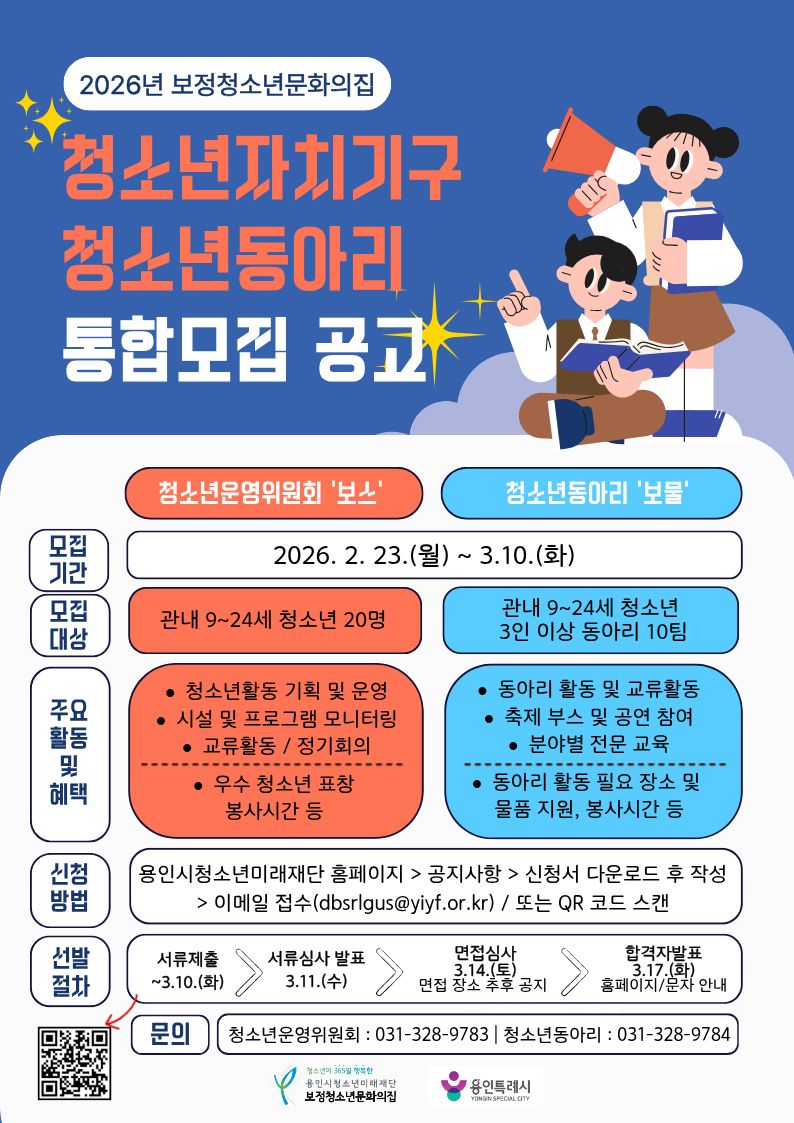 보정청소년문화의집 청소년자치기구 청소년동아리 통합모집 공고