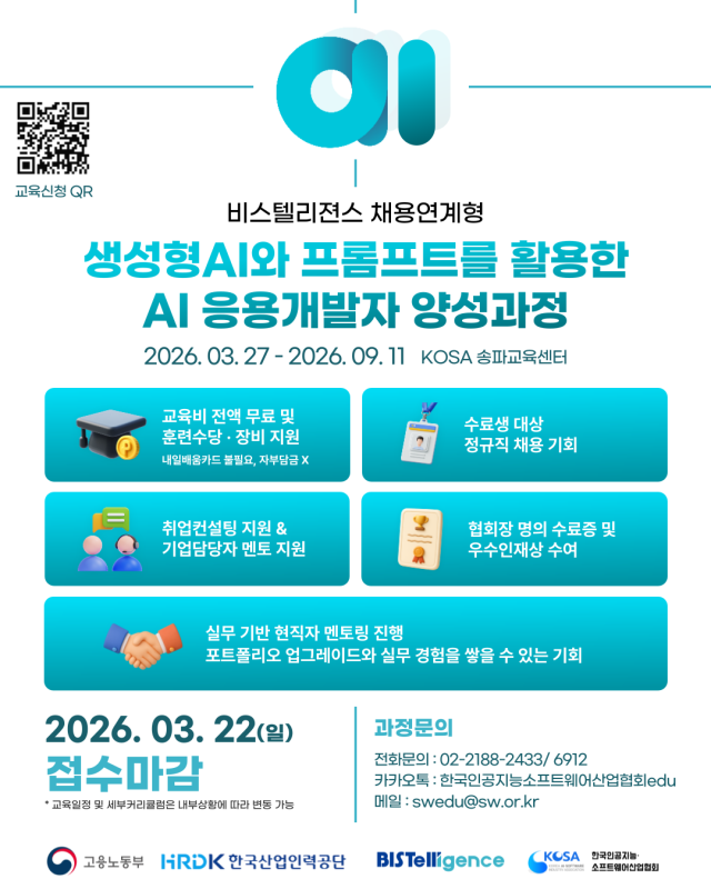 KOSA x 비스텔리젼스 채용연계형 과정 교육생 모집중