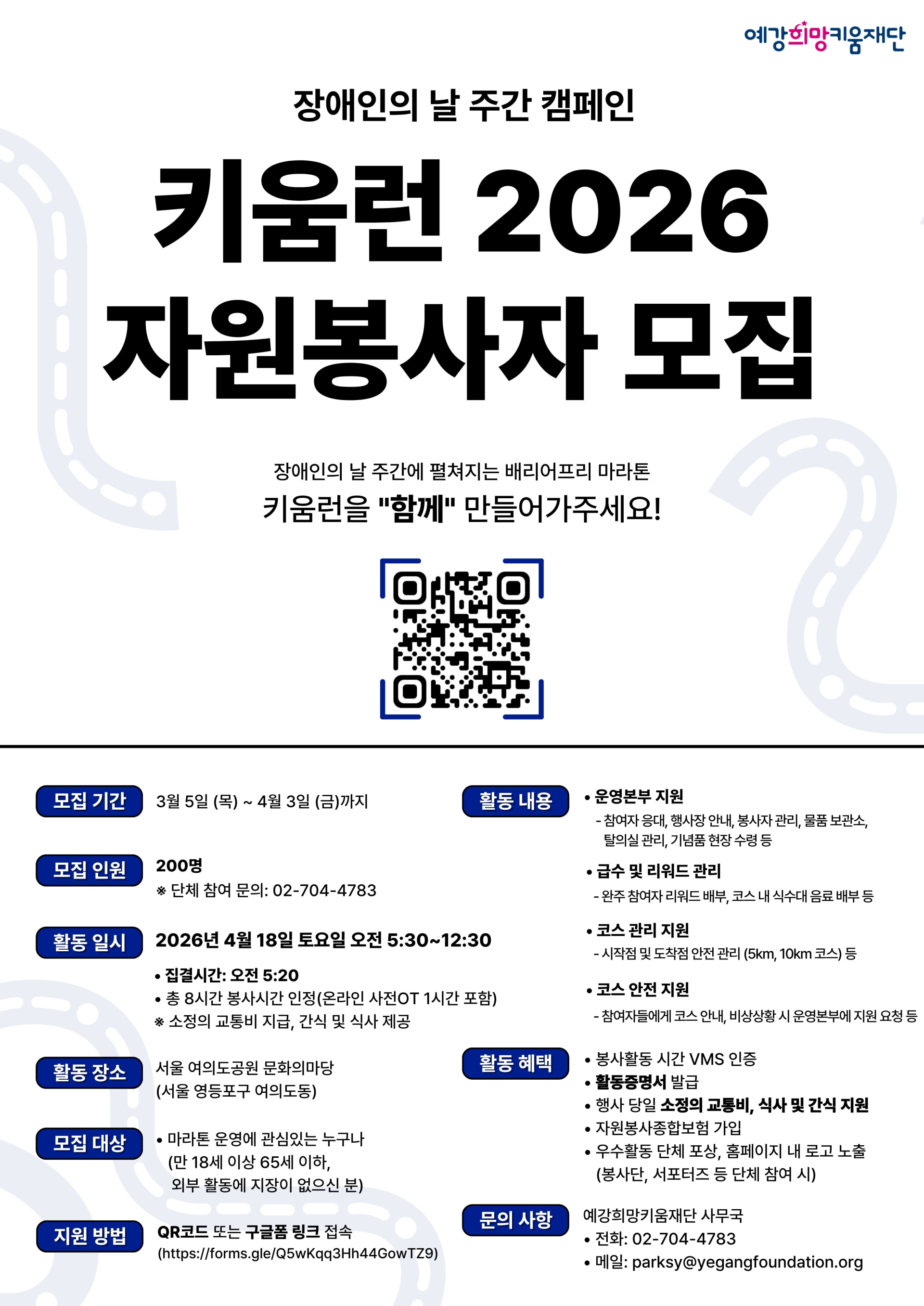 장애인의 날 주간 캠페인 '키움런 2026' 자원봉사자 모집