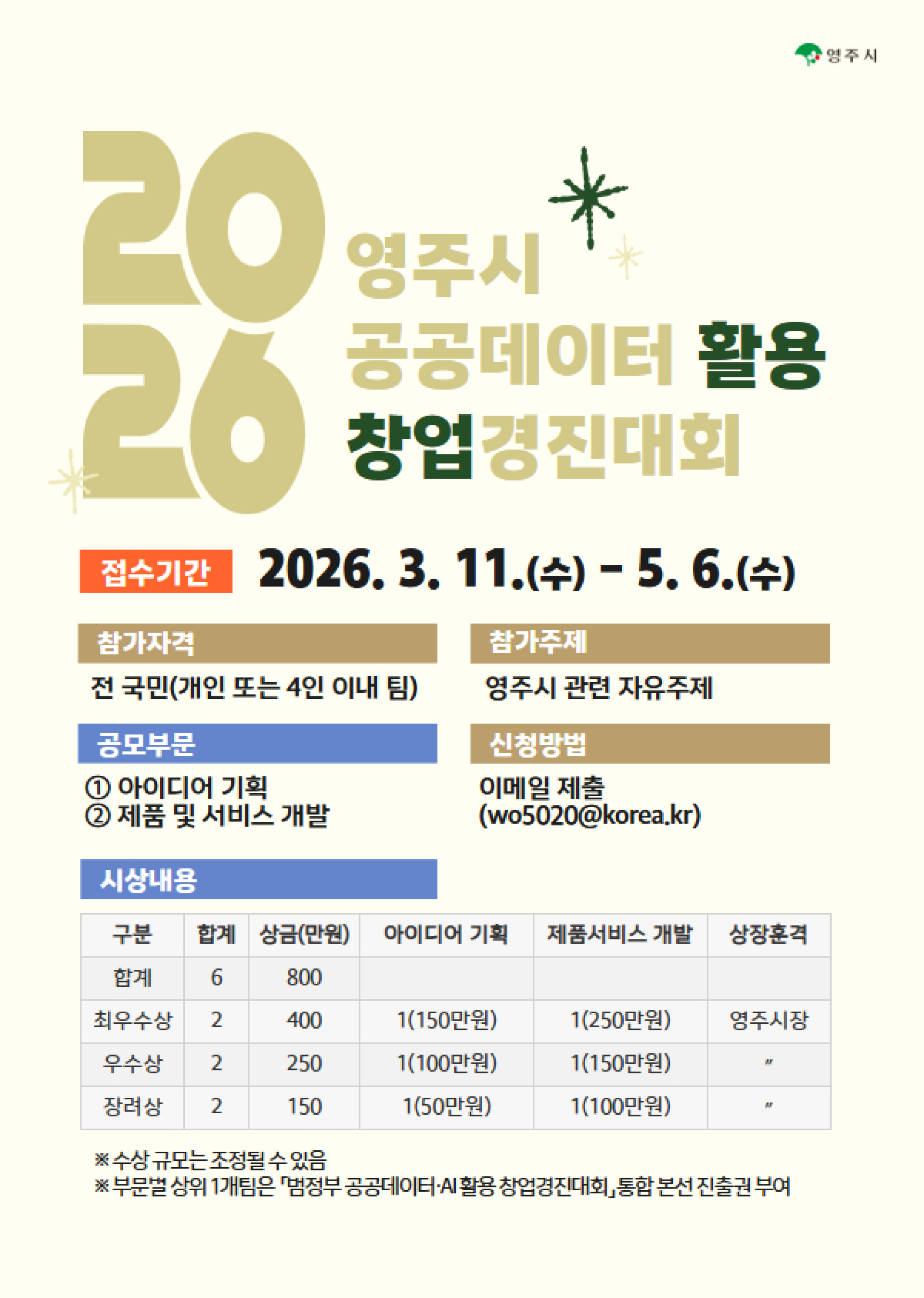2026년 영주시 공공데이터 활용 창업경진대회