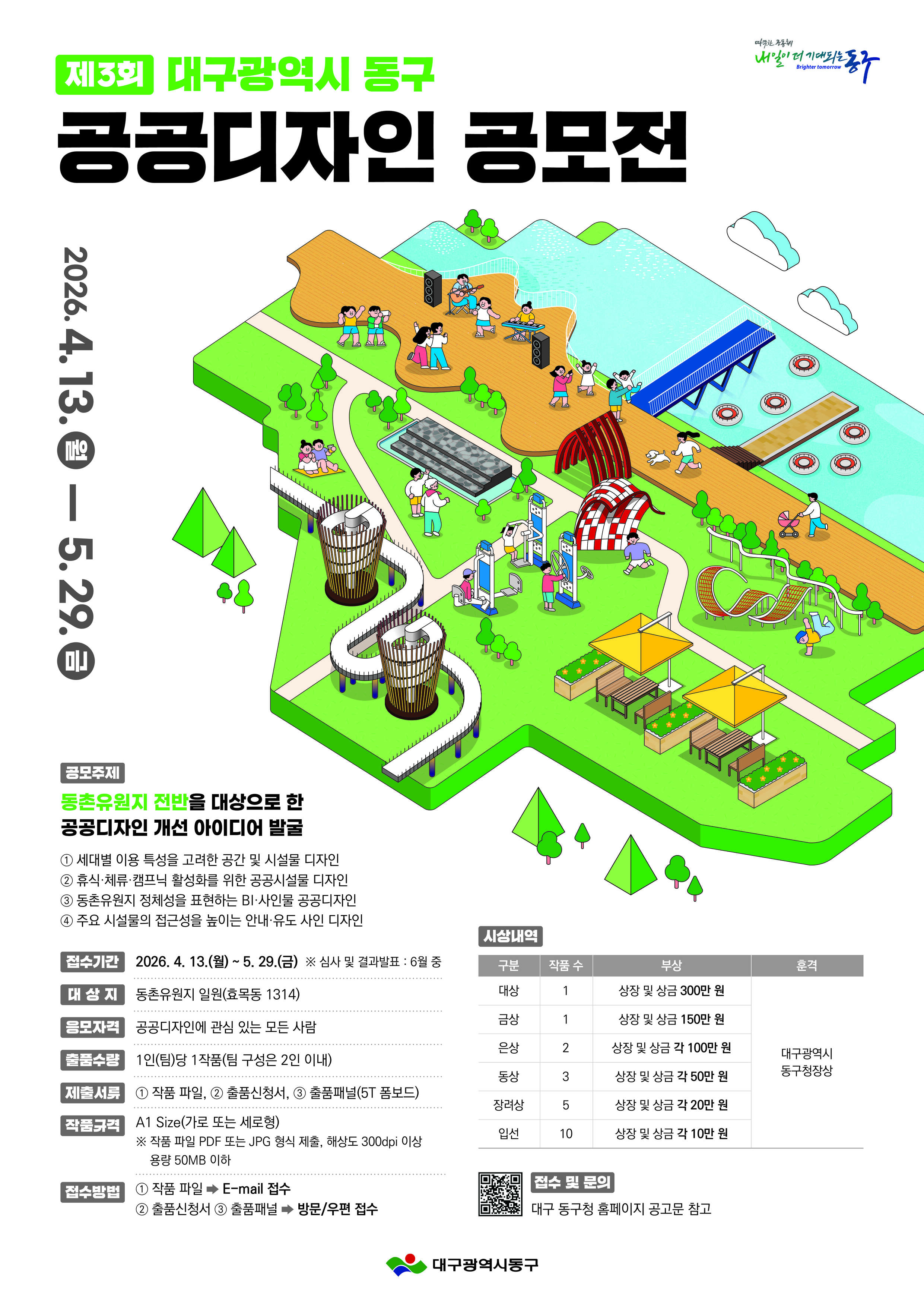 - 공모주제: 대구광역시 동구 동촌유원지 전반을 대상으로 한 공공디자인 개선 아이디어 발굴