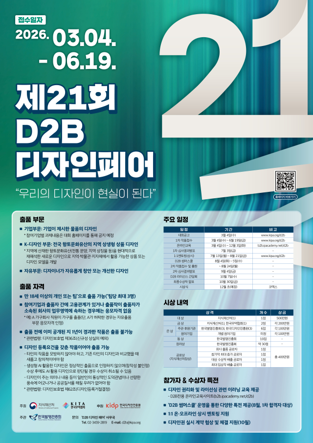 - 접수처: D2B 디자인페어 공식 홈페이지 온라인 접수