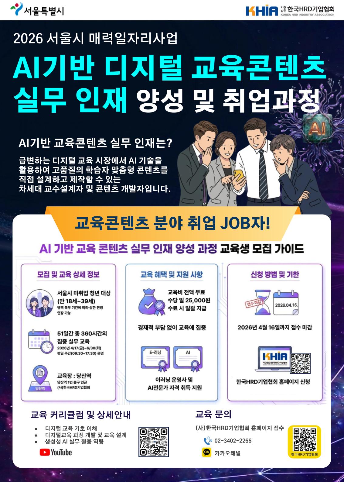 [서울시 매력일자리] 교육비 전액 무료! 경력쌓기 절호의 기회! AI기반 디지털교육콘텐츠 실무인재 양성 및 취업과정