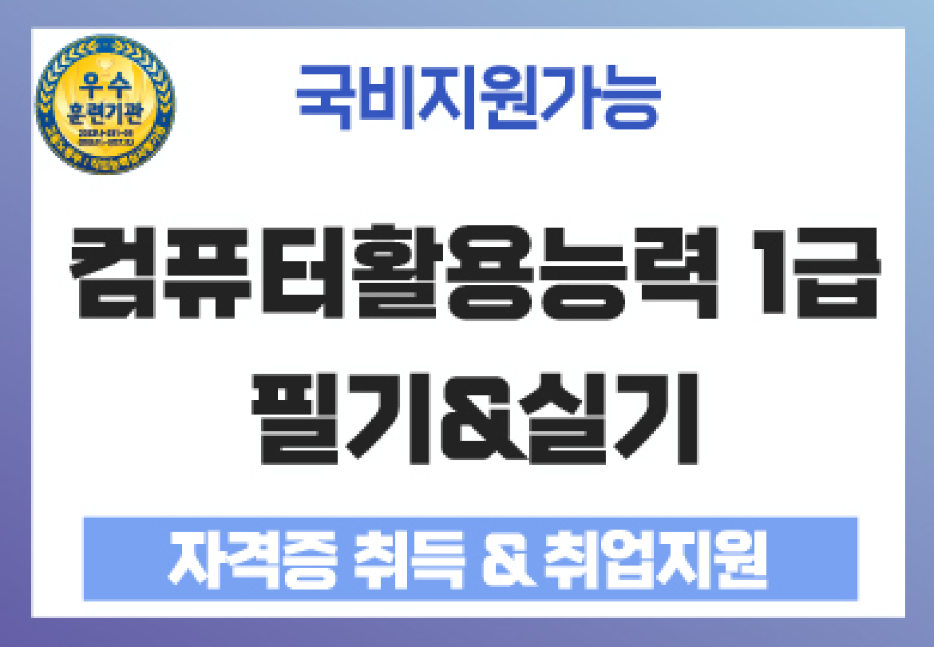 [국비지원]『한번에 취득하는』컴퓨터활용능력(컴활) 1급 (필기+실기) 자격증 취득과정
