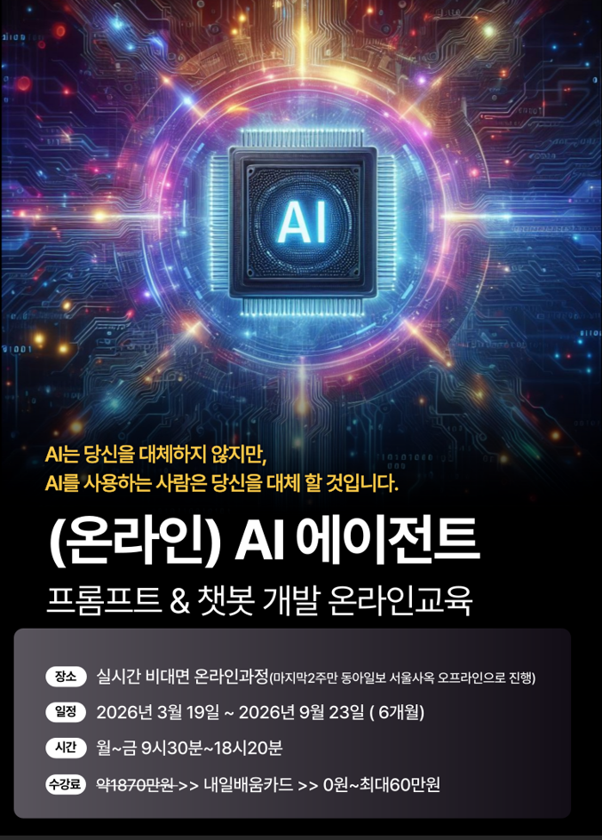 [동아일보AI랩] 프롬프트엔지니어링 에이전트강의 (온라인/비대면/6개월/노트북지원) 참여자를 모집합니다.