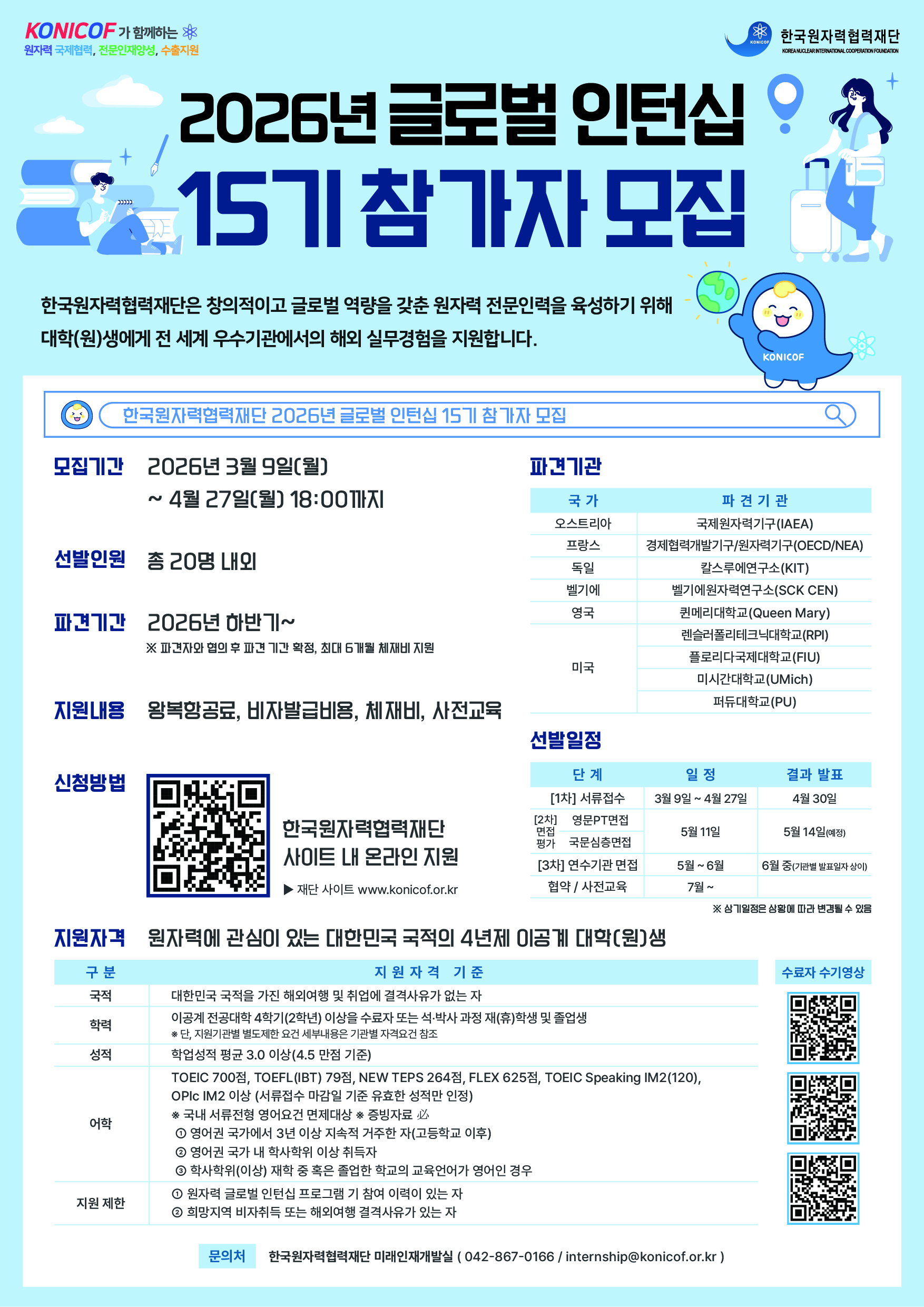 - 한국원자력협력재단 미래인재개발실 ( 042-867-0166 / internship@konicof.or.kr)