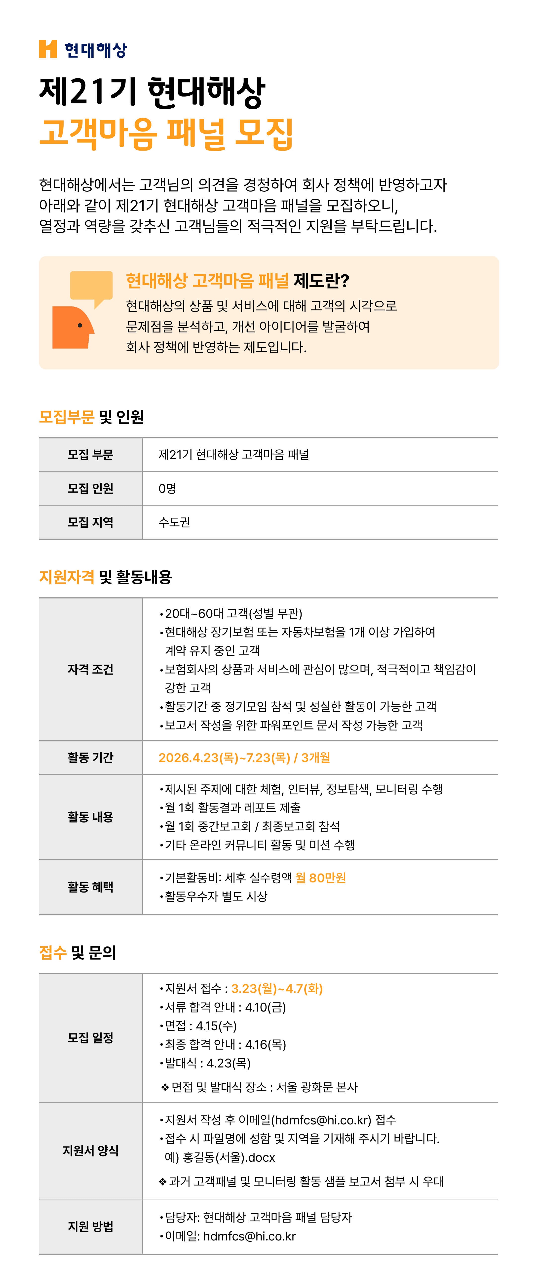 - 21기 현대해상 고객마음 패널을 모집합니다.