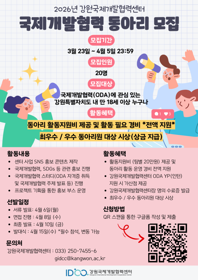 - 강원국제개발협력센터에서 [2026년 국제개발협력 동아리]를
