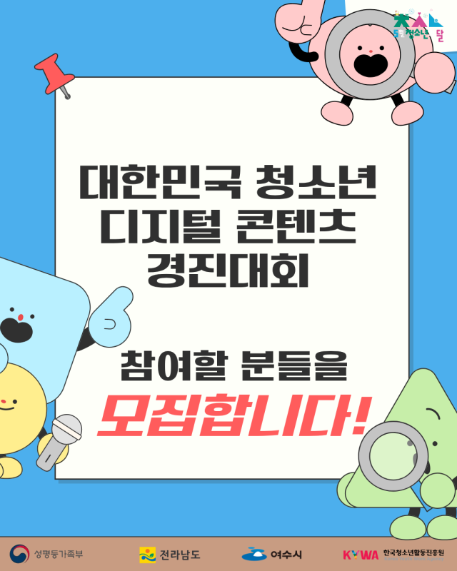 - 제22회 대한민국청소년박람회 청소년 디지털 콘텐츠 경진대회를 개최합니다.