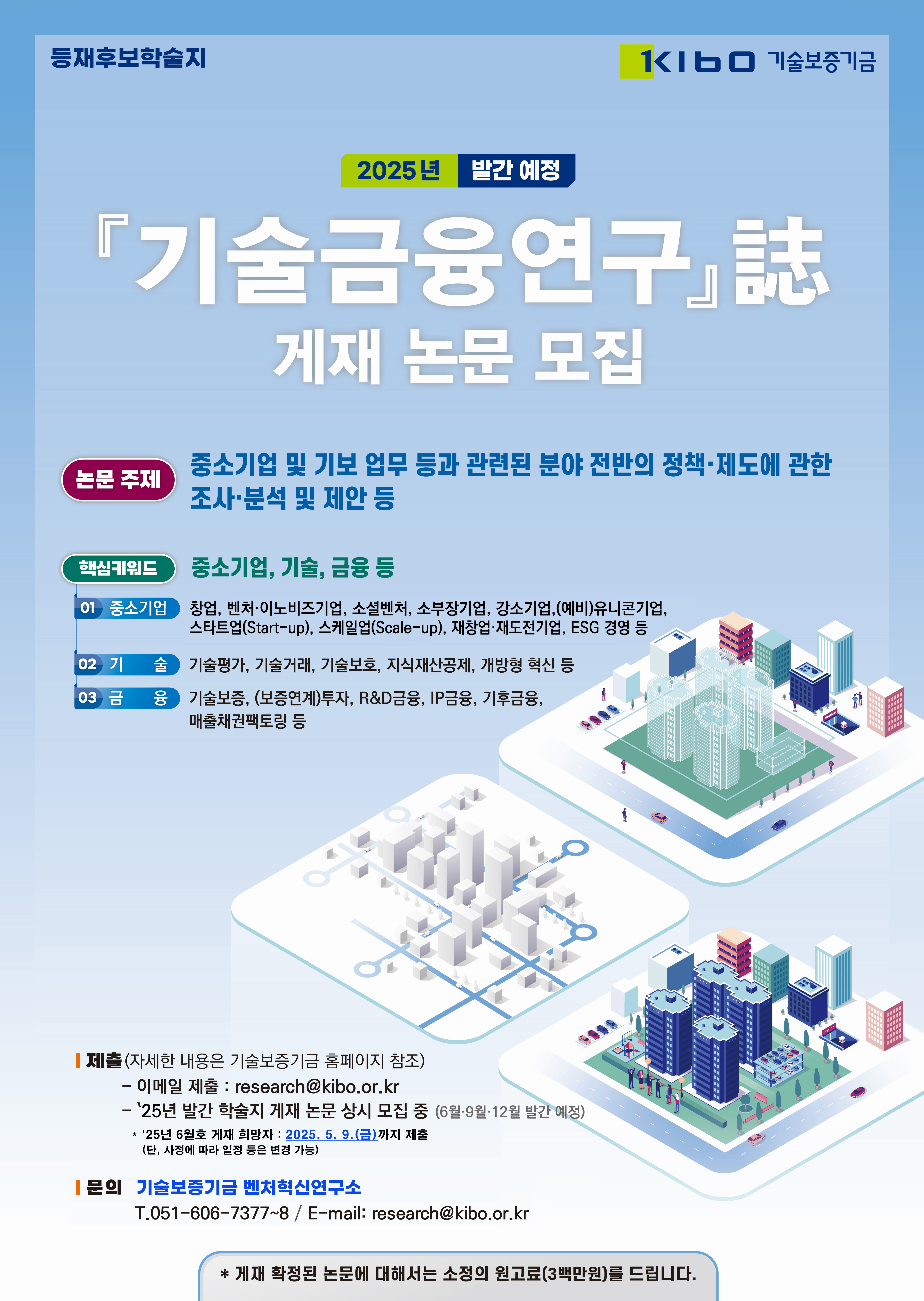기술보증기금 기술금융연구 誌 게재 논문 모집