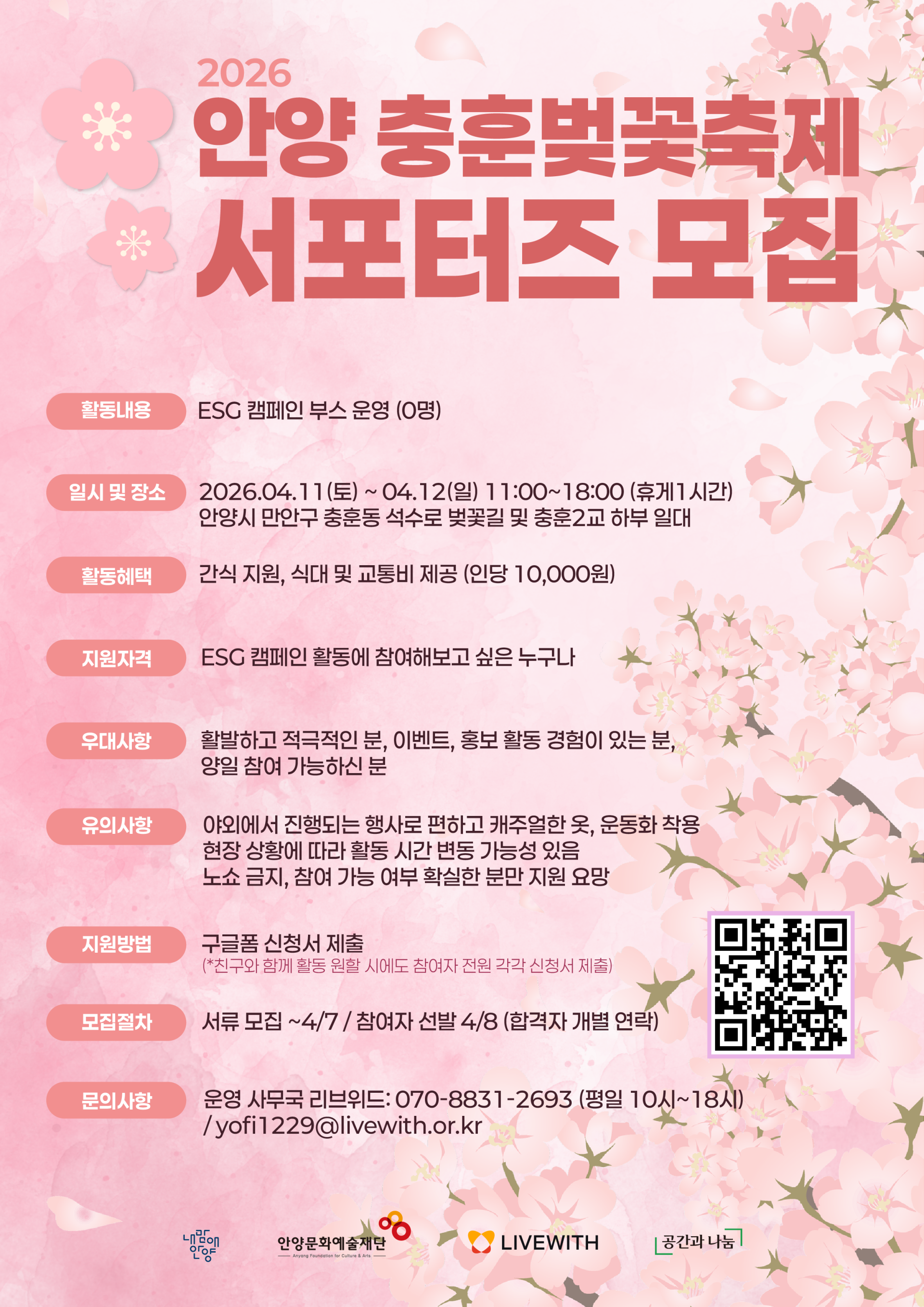 - 2026 안양 충훈벚꽃축제 서포터즈 모집