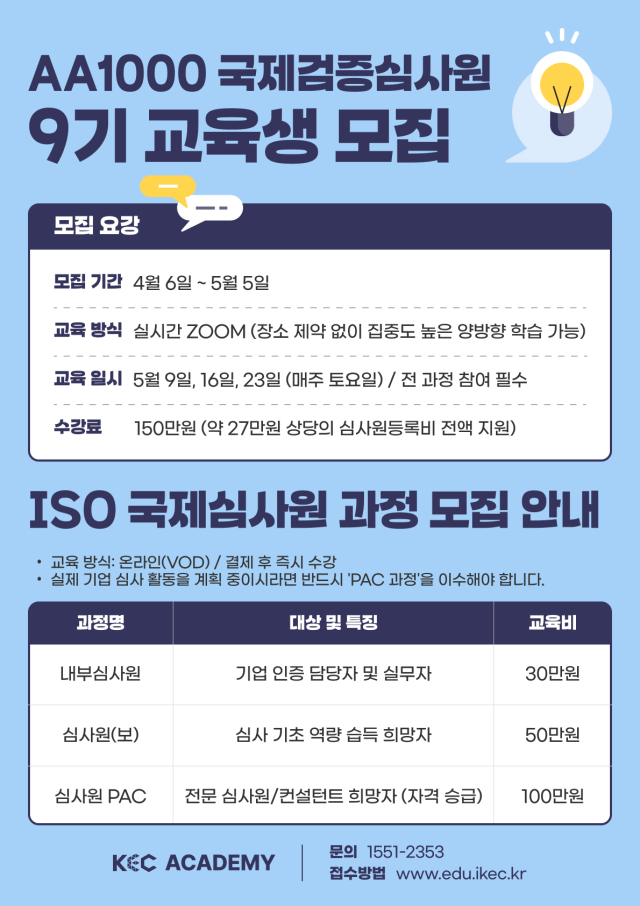 - 대상 : 기업의 ISO인증 담당자, 실무자