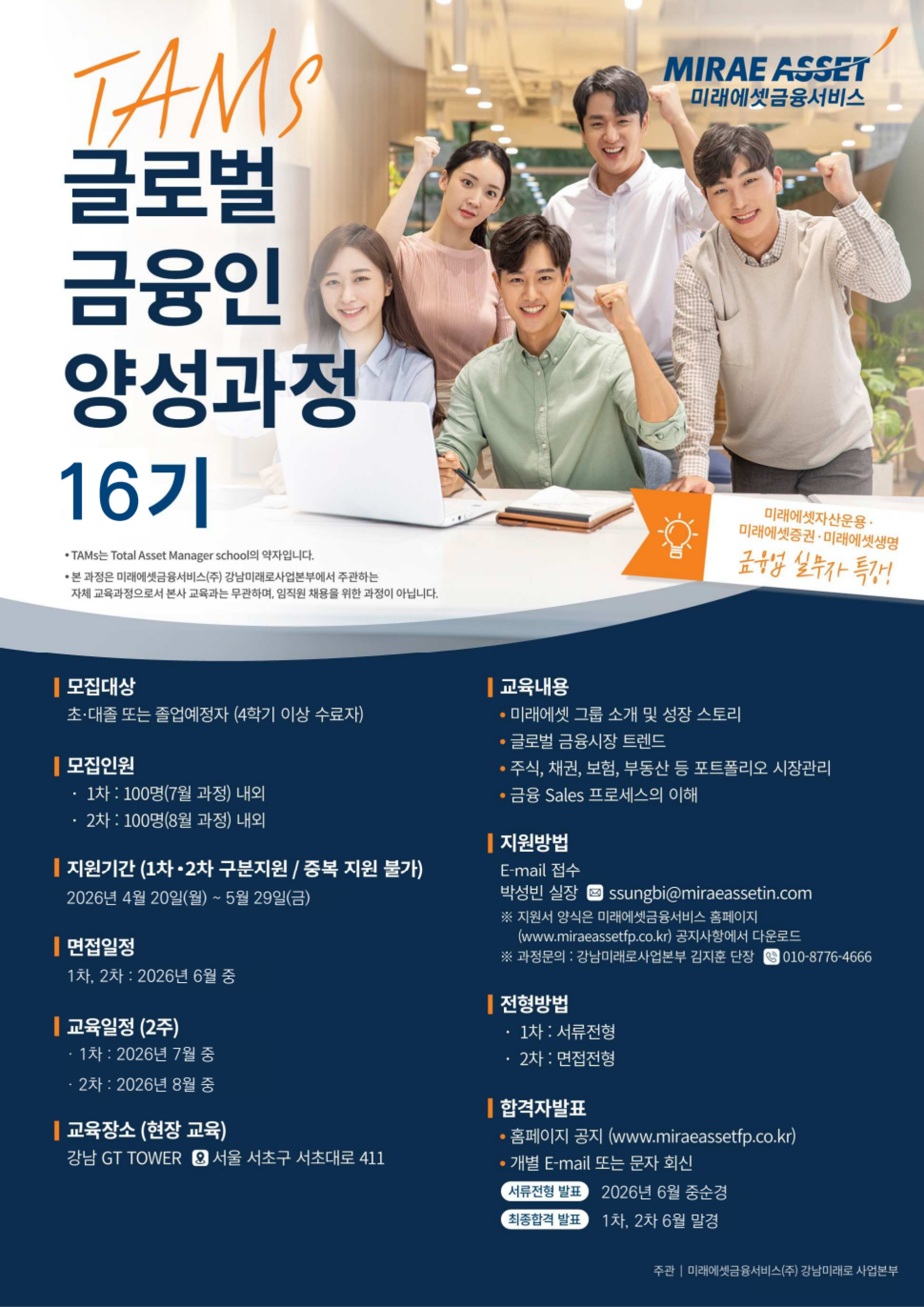 미래에셋금융서비스 TAMS 글로벌 금융인 양성과정 16기 모집 & 부산 5기 모집