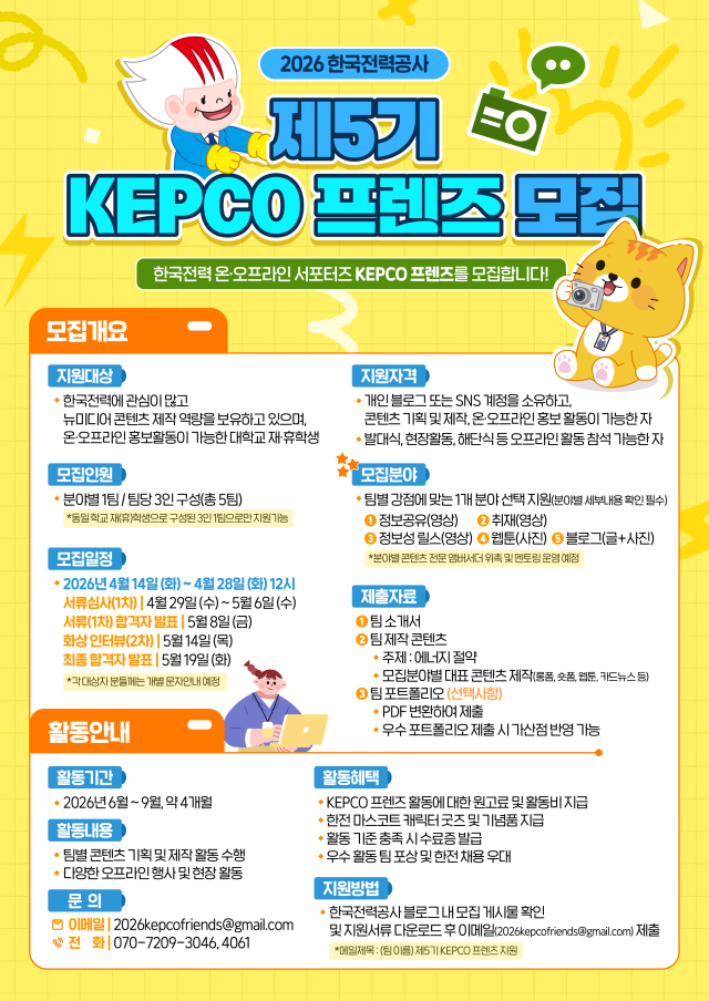 2026한국전력공사 KEPCO 프렌즈 5기 모집안내