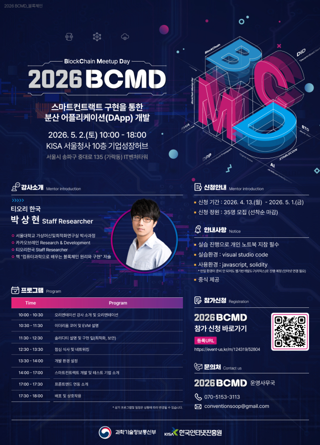 「2026 블록체인 밋업데이(BCMD)」 2회차 교육생 모집
