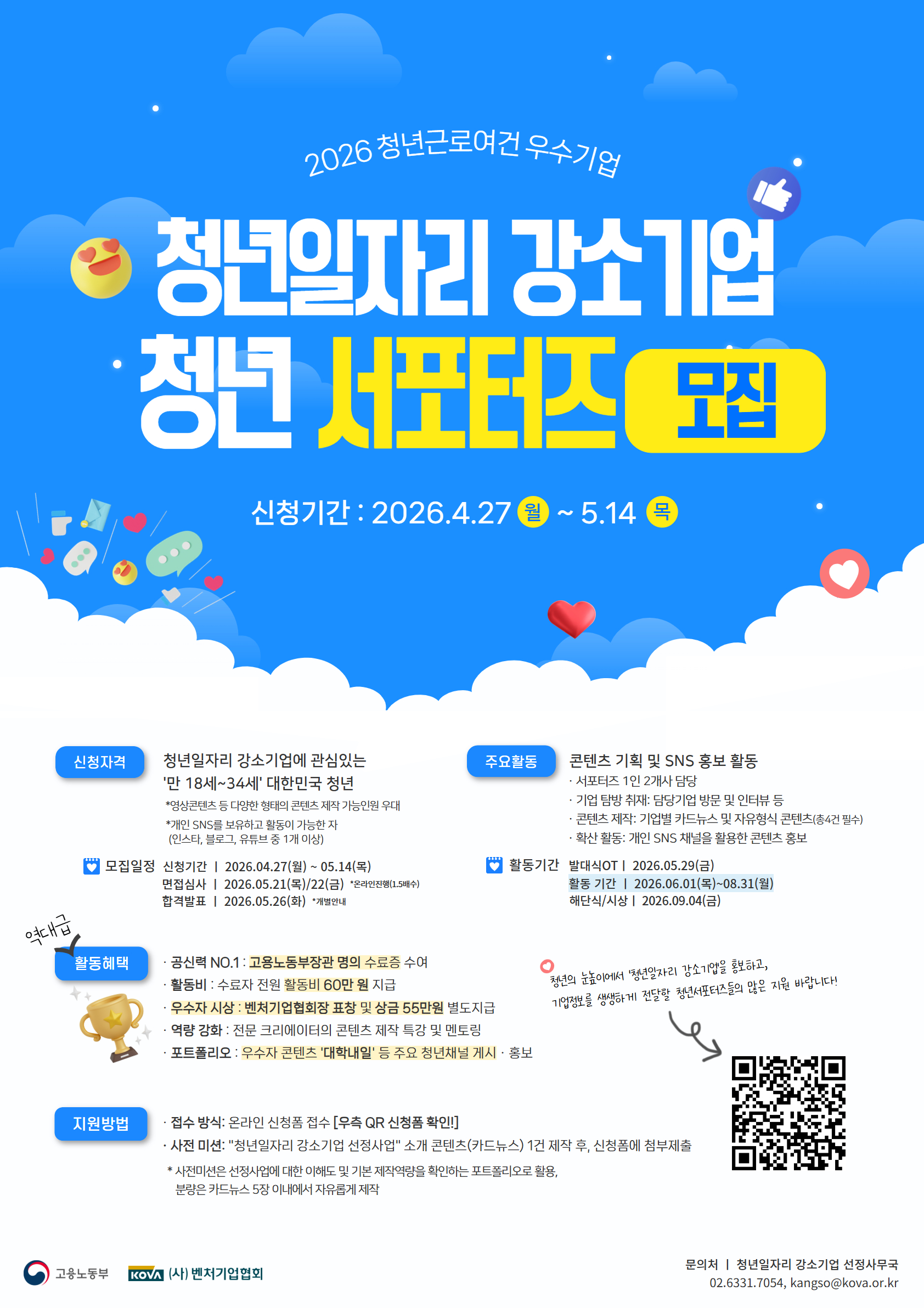 [ 2026 청년일자리 강소기업 ] 청년서포터즈 모집 (~5/14)