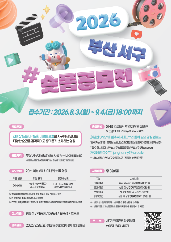 지역 관광을 활성화하고자 「2026년 부산 서구 숏폼 공모전」을