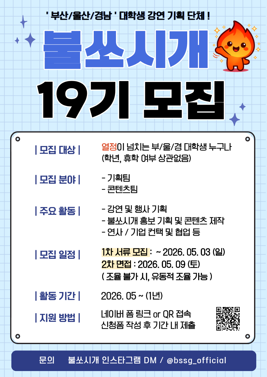 [부/울/경] 대학생 강연 기획 단체 ‘불쏘시개’ 19기 신입 부원 모집