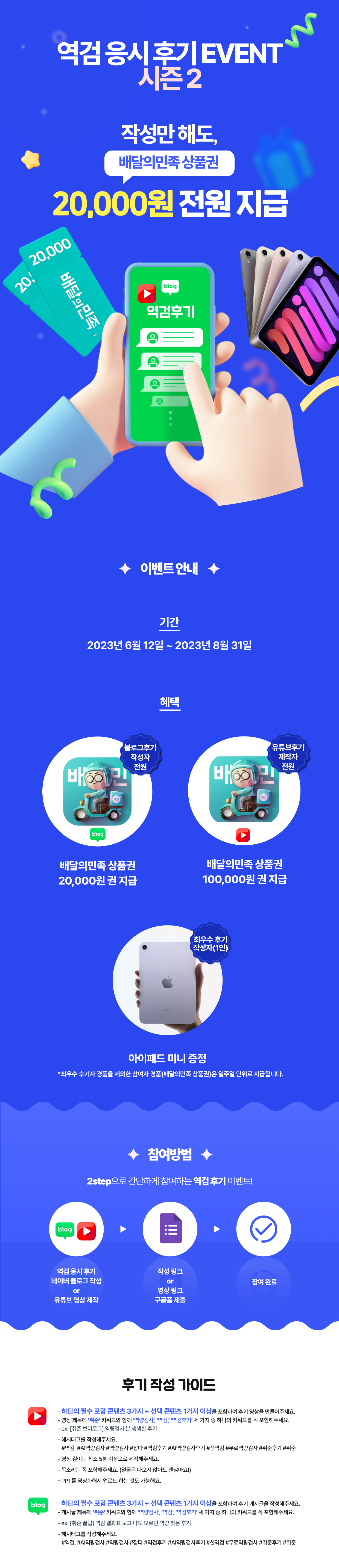| 시상내역 | 최우수 후기자 아이패드 미니/작성자 전원 2만원 기프티콘 증정 |