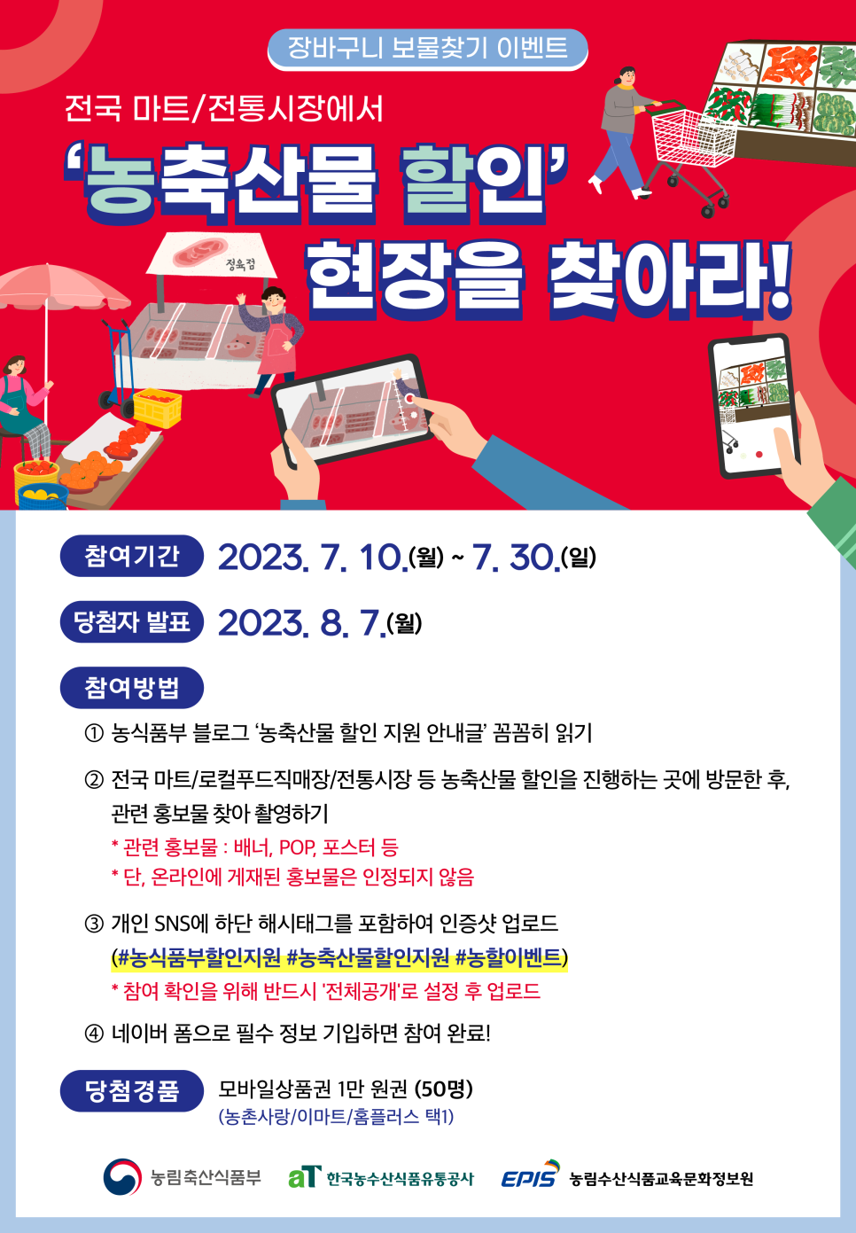 | 시상내역 | 모바일상품권 1만 원권 (50명) *농촌사랑/이마트/홈플러스 중 1개 선택 |
