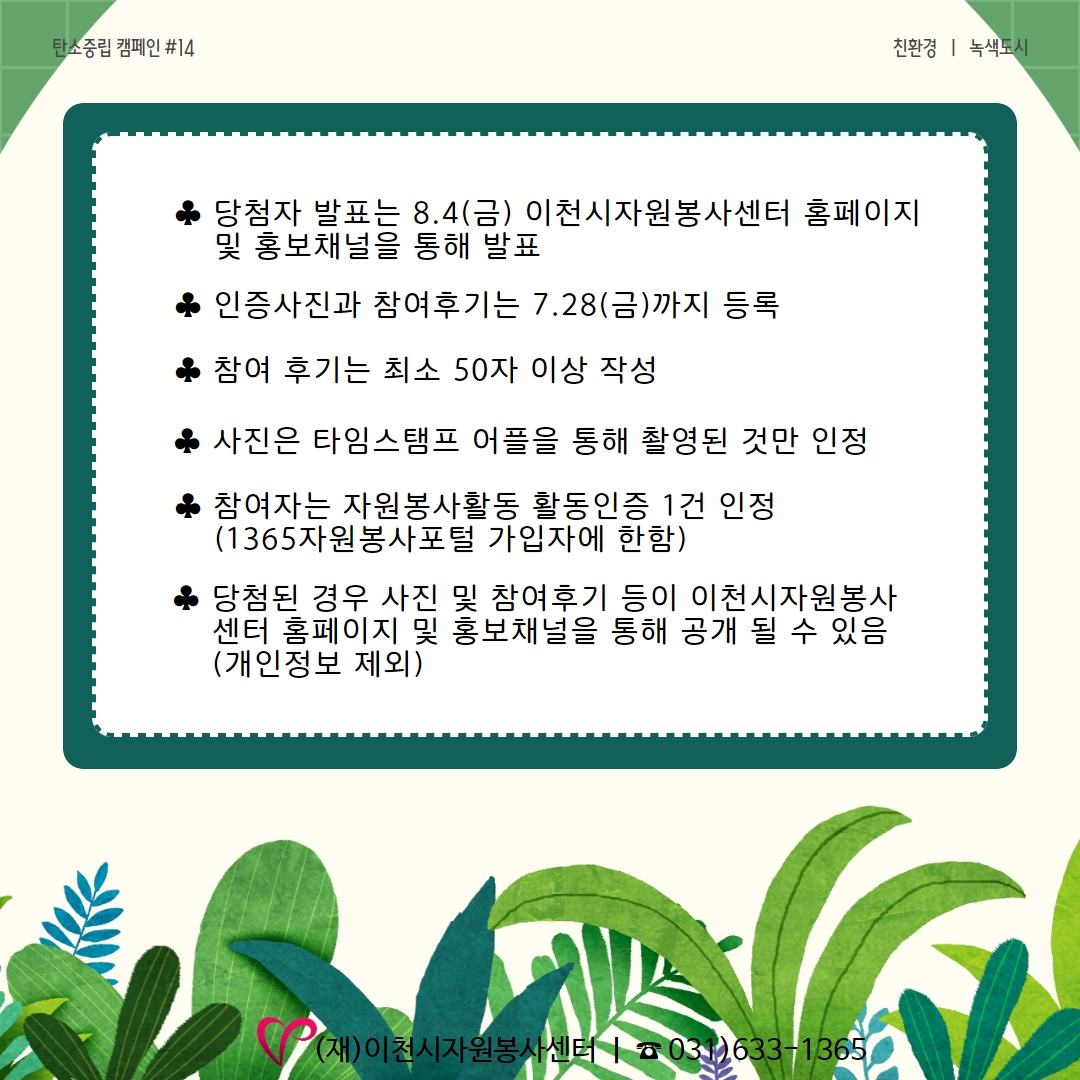 ♣ 당첨자 발표는 8.4(금) 이천시자원봉사센터 홈페이지 및 홍보채널을 통해 발표
