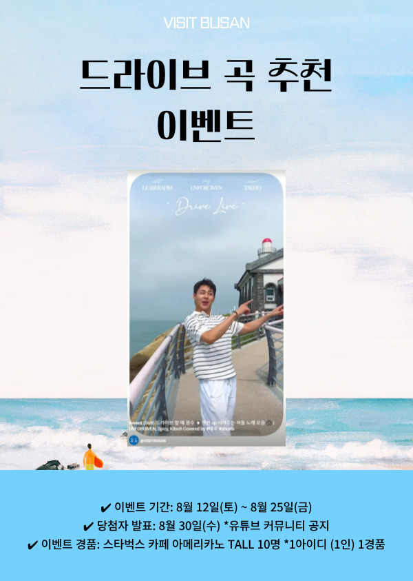 ※ 비짓부산 > 태호 드라이브 커버 영상 내 댓글 참여 시에만 이벤트에 응모됩니다.
