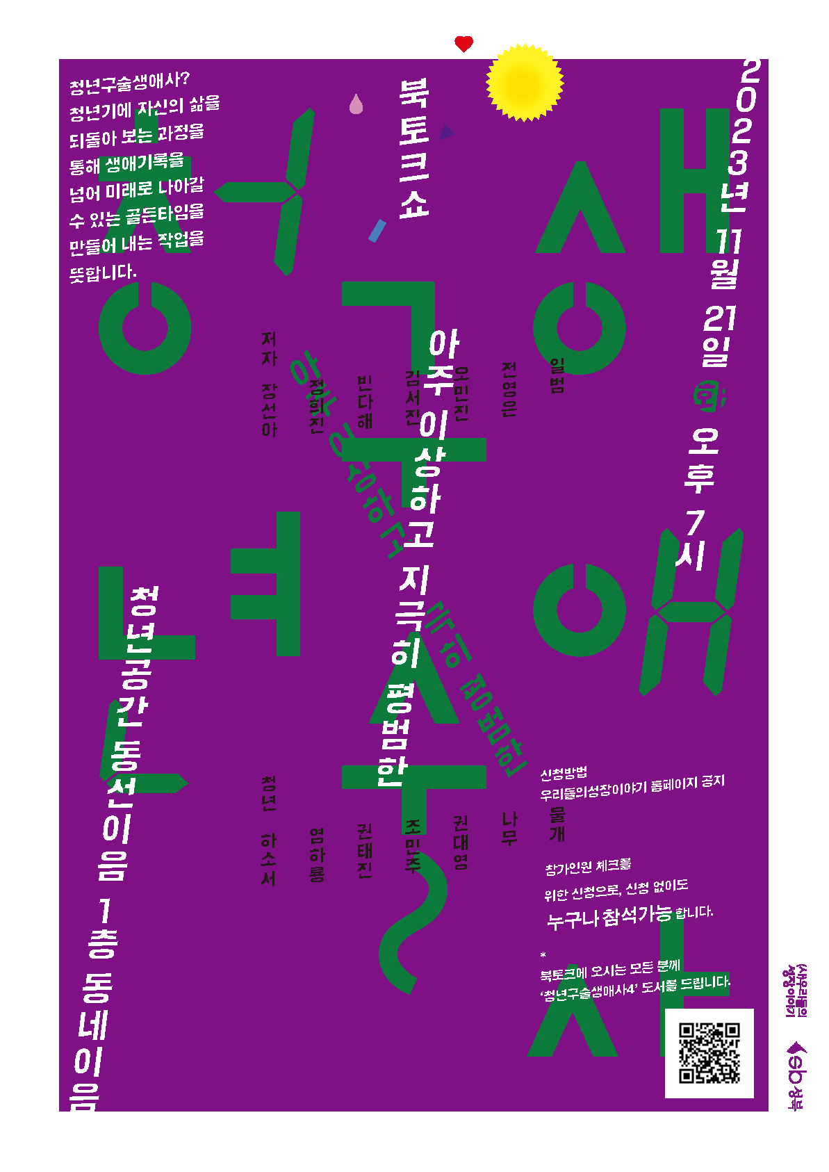 그렇게 일곱 개의 이야기가 모여 한 권의 책인, 『2023 청년구술생애사』가 되었고, 출간을 기념하기 위하여 북토크쇼 <아주 이상하고 지극히 평범한>을 진행합니다.
