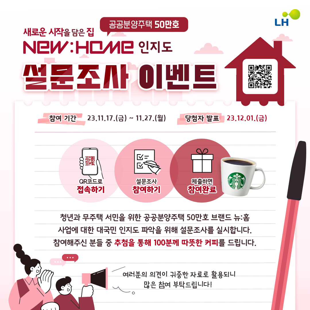 -공공분양주택 50만호, 뉴:홈 인지도 조사를 위한 설문 이벤트 진행