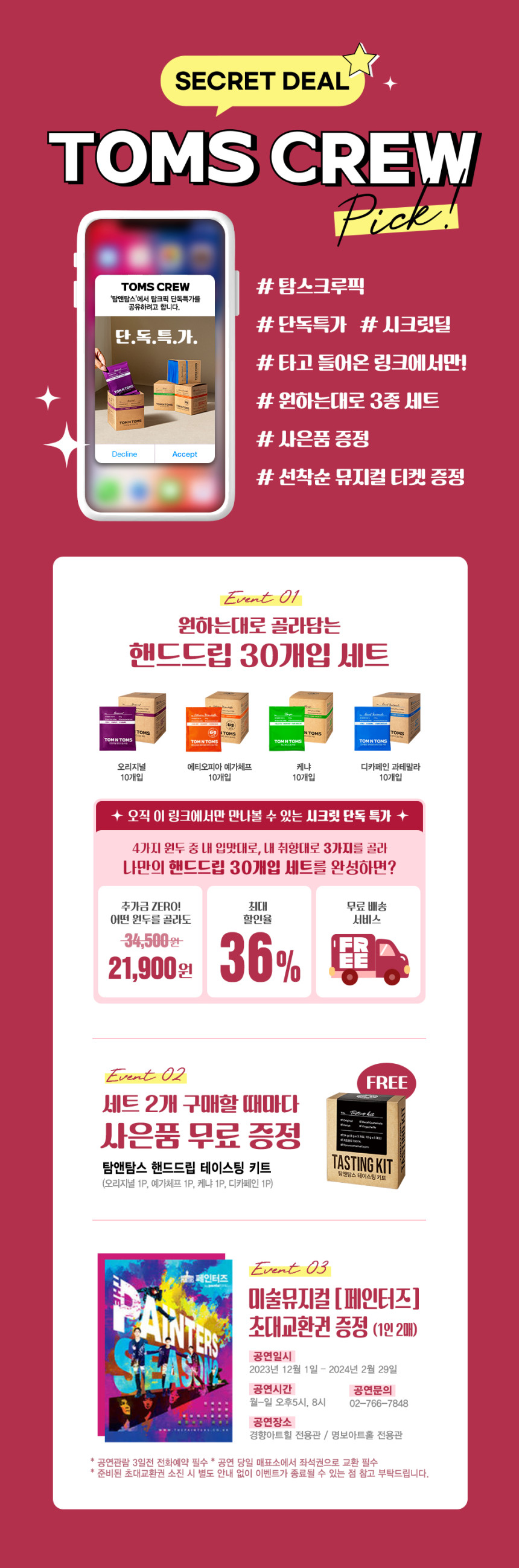 [TOM N TOMS] 원하는대로 3종 핸드드립 커피 세트 프로모션