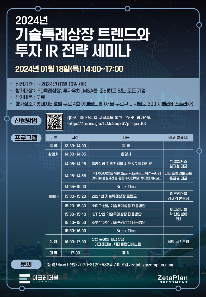 기술특례상장 트렌드와 투자 IR 전력 세미나