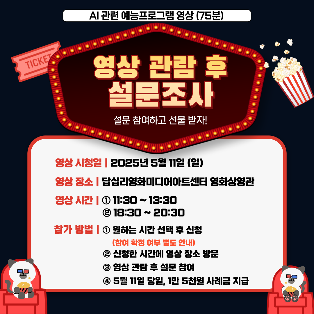- 설문에 참여해주신 분들께는 1만 5천원 사례금을 당일 지급해드립니다.